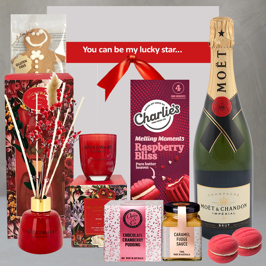 You will be their lucky star if you send them this gift for Christmas. How can you go wrong with a bottle of Moet? And all the other good stuff too?